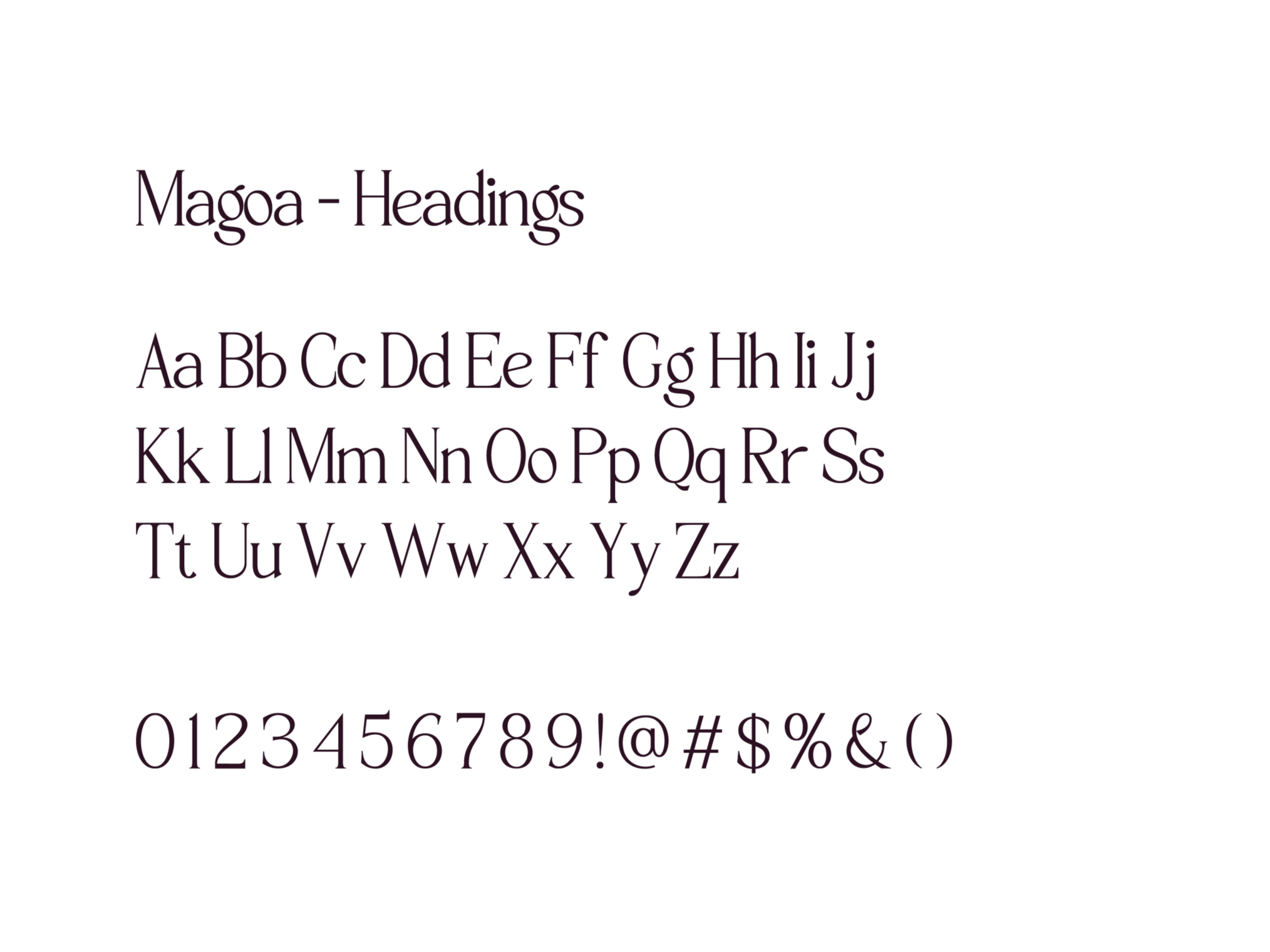 I chose Magoa and Brandon Grotesque to balance romance and modernity within the Ever After brand. Magoa’s soft curves and elegant letterforms bring a sense of timeless sophistication, echoing the emotion and beauty behind each love story. In contrast, Brandon Grotesque adds structure and clarity, keeping the system fresh, grounded, and contemporary. Together, they create a perfect harmony of refined and romantic, but still clean, modern, and approachable.