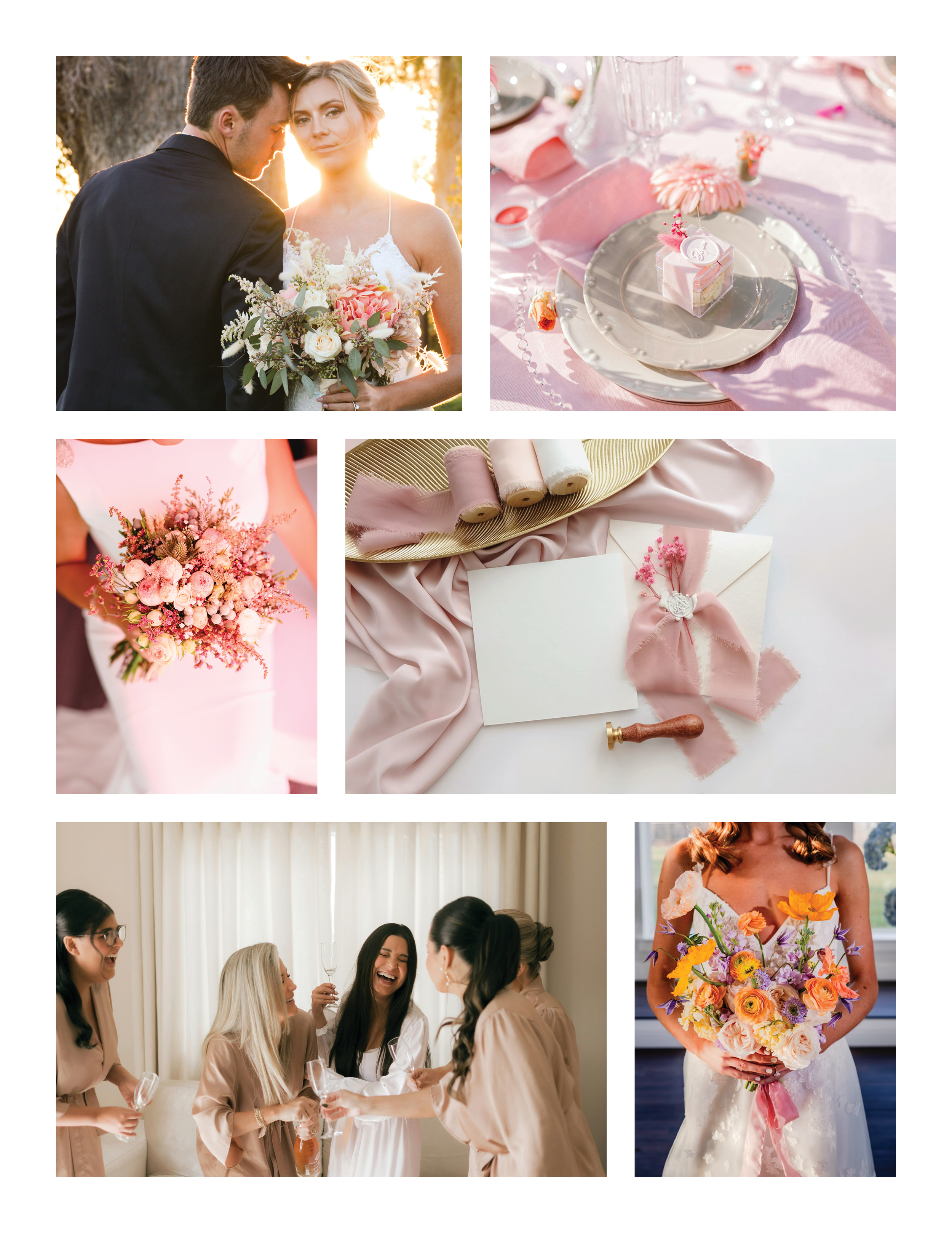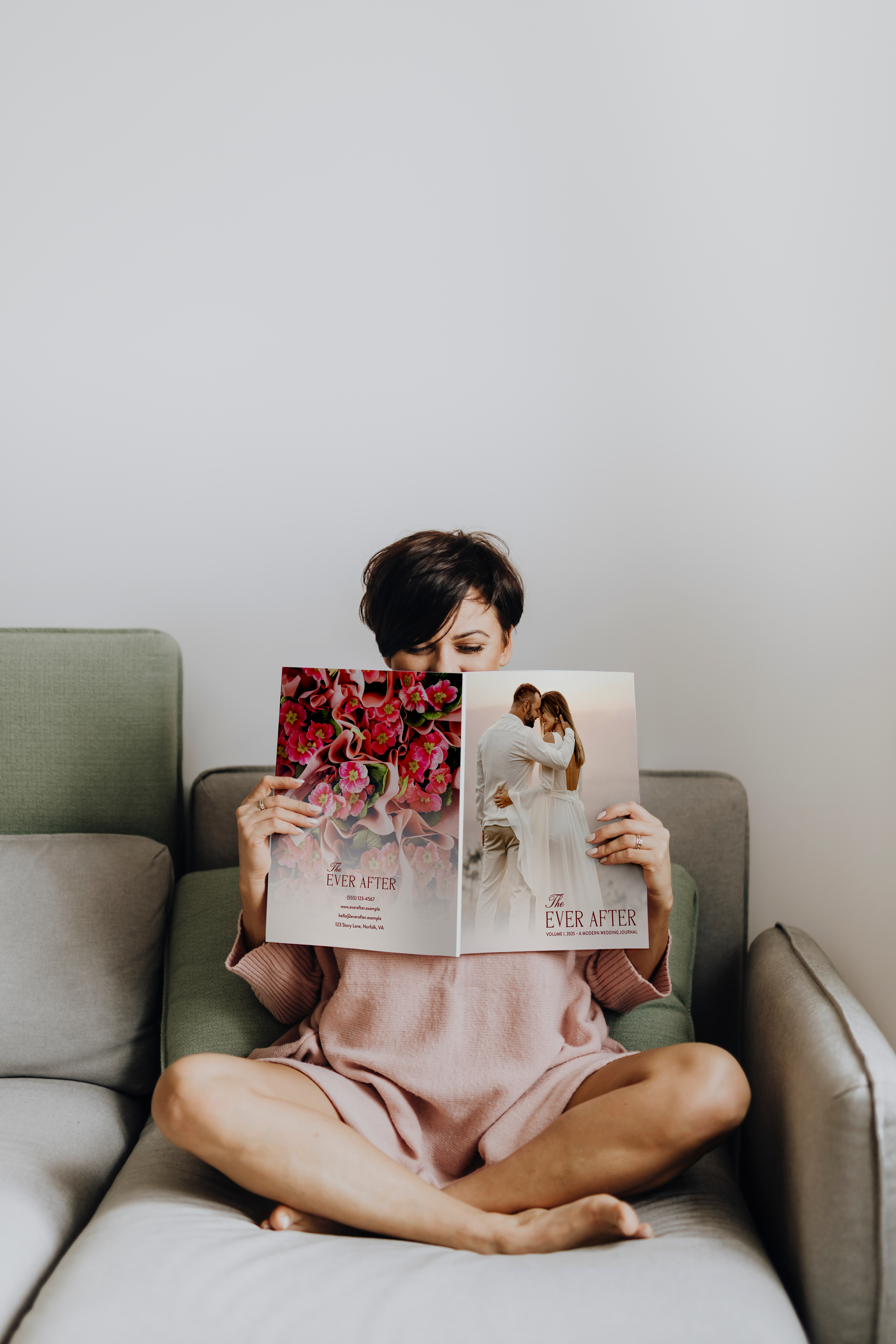 That’s where The Ever After came in. The new name captured the romantic, modern luxury I had envisioned all along. I refreshed the palette, keeping the soft pinks but introducing deeper reds for passion and stronger contrast. Most importantly, I reworked the photography to bring in warmth with glowing tones of pink, orange, and gold that finally made the magazine feel cohesive, inviting, and alive. It was the missing element that truly completed the story.