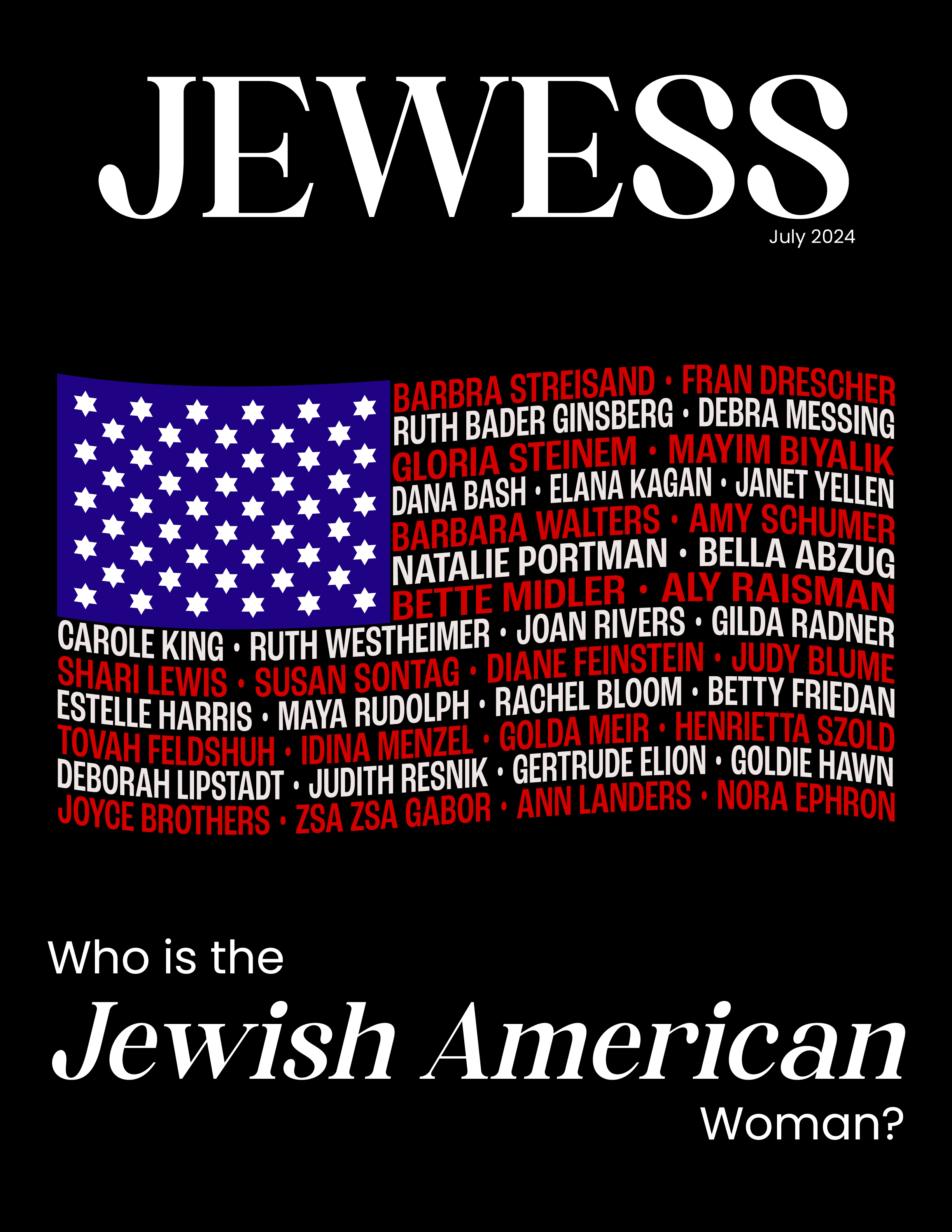 I could choose any medium we wanted, which was both exciting and a little overwhelming. I went with digital, since it’s my favorite way to design. After exploring a few directions, I decided on a magazine cover because I’ve always loved editorial design and how it combines type, image, and story. From the start, I knew I wanted to highlight the diversity of Jewish American women and show that there’s no single version of what “Jewess” means.